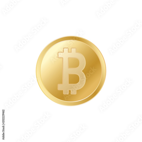 Golden glossy bitcoin coin. Gold pictograph bitcoin shiny coin.