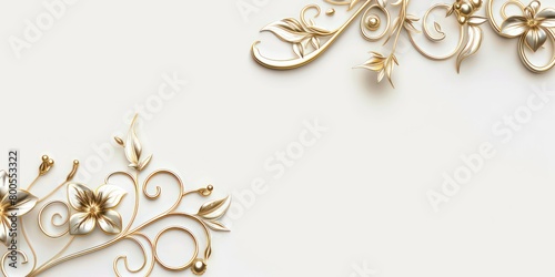 golden glossy wallpaper cropped corner decorated with swirls and flourishes isolated on a white background