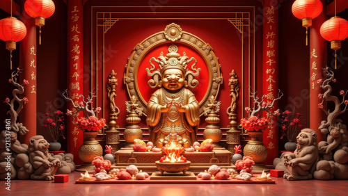 Golden God of Wealth Statue Lunar New Year - 3D renders