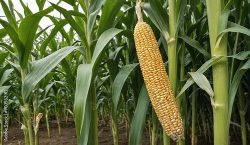 Golden Harvest Corn on Cob Amongst Cornstalks