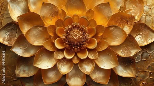 Golden lotus blossom with intricate petals and textures, creating a stunning visual centerpiece in serene decor. Generative AI