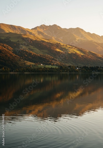 Golden Mountain Reflection on Calm Lake
