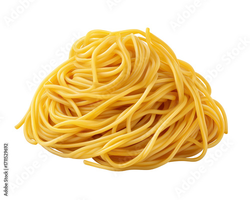 Golden Noodle Nest: A visually stunning close-up shot of a perfectly cooked nest of golden noodles, radiating warmth and inviting culinary pleasure.