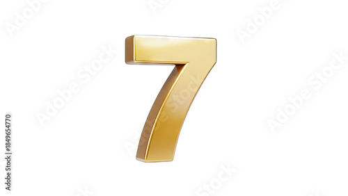 Golden Number 7 Isolated on White Background