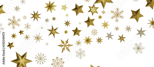 golden openwork shiny snowflakes, star, 3D rendering.
