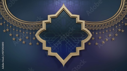 Golden Ornament with Stars and Geometric Patterns on a Blue Background