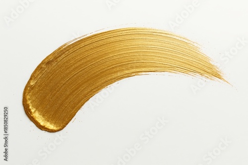 Golden paint brush stroke with metallic shimmer in a curved motion on clean white background, showcasing a creative artistic concept in minimal style. Ai generative