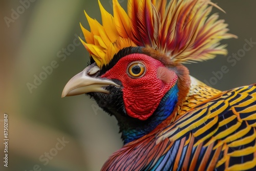 golden pheasant with tail feathers fanned out