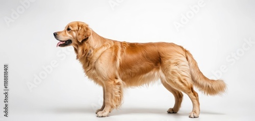 Golden Retriever Dog Standing Proudly in Profile, Capturing Elegance and Loyalty on a White Background