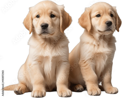 Golden retriever puppy sitting and looking adorable isolated on transparent background
