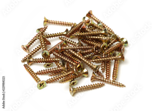 Golden screws isolated on white background