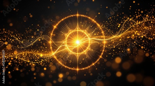 Golden spiral time portal with glowing particles in motion symbolizing science fiction, time travel, energy vortex, and futuristic exploration