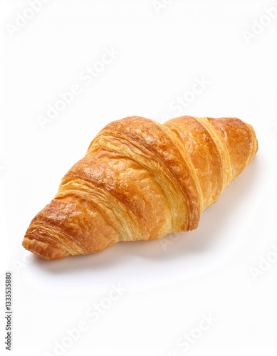 Golden-brown croissant, flaky layers, delicious pastry, breakfast treat.