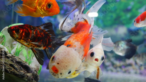 goldfish swimming in the aquarium with clear water, looks very beautiful