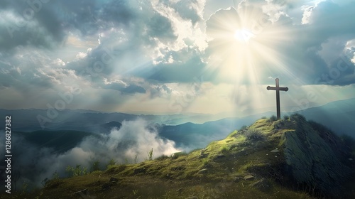 Good Friday. Friday before Easter. Christian cross on the hill on sunrise. High quality photo