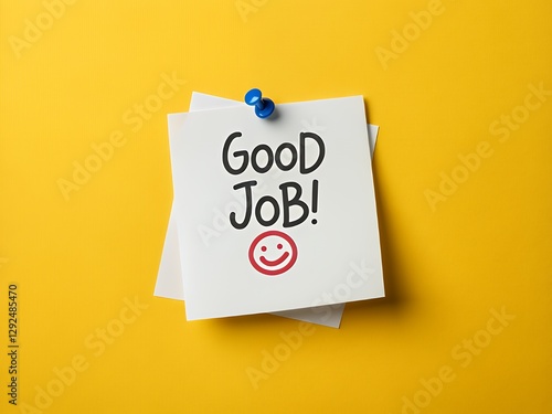 Good Job Note on cork board on paper