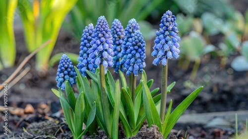 Gorgeous grape hyacinth flowers in the garden