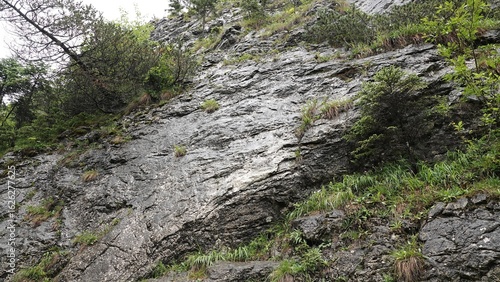 Górskie tereny podczas pochmurnej, deszczowej pogody