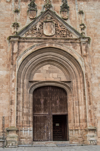 Gothic entrance to the collegiate church of Santa María del Mercado in Berlanga de Duero, province of Soria. Spain