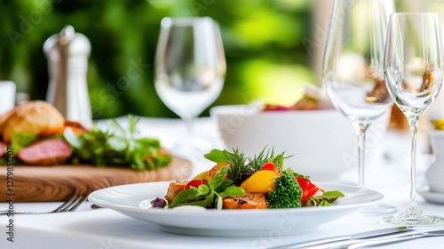 Gourmet Plated Salad with Fresh Vegetables and Culinary Presentation in Elegant Dining Environment