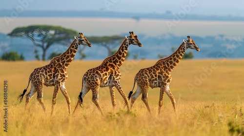 Graceful Giraffes Roaming the Serene African Savanna Landscape