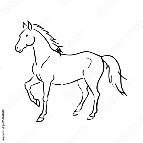 Graceful horse outline sketch portrays elegant equine with flowing mane and tail. Artistic horse outline sketch captures powerful animal form for design applications.