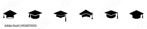 Graduation hat cap icons set. Academic cap. Graduation student black cap and diploma. Vector Illustration. Vector Graphic. EPS 10