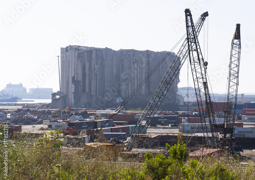Grain silos at Beirut Port destroyed after a massive explosion, Beirut Governorate, Beirut, Lebanon