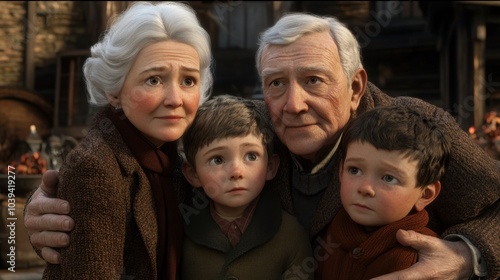 Grandparents Hugging Grandchildren in Loving Family Portrait