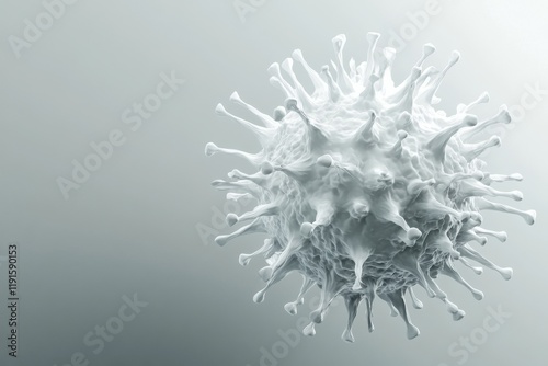 Graphical representation of a virus showcasing minimalistic design in a soft gray background. Generative AI