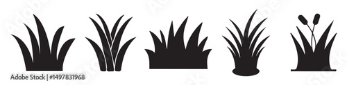 Grass silhouettes collection. Grass field border isolated on a white background