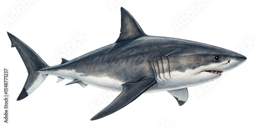Great White Shark Watercolor Illustration, Isolated on Transparent Background, Marine Life, Aquatic Animal, Predator, Ocean, Wildlife