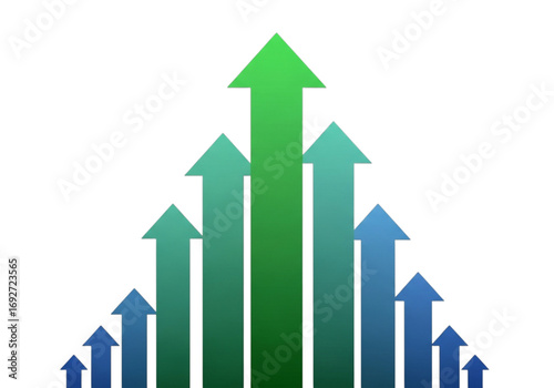 Green and blue arrows pointing upwards in a graph isolated on transparent background