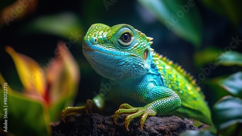 Green and Blue Lizard Close-Up