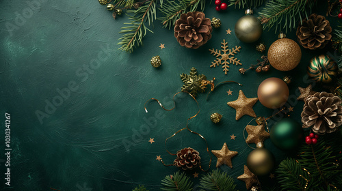 Green and Gold Christmas Ornament Decor Background