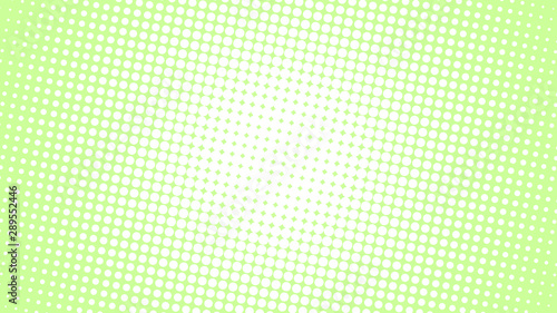 Green and white pop art background in retro comic style with halftone dots, vector illustration of backdrop with isolated dots