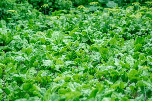 green beet leaves on a farm plantation
