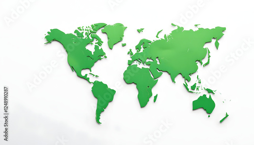Green Cartography Of The World In A White Background, papercraft. with white shades