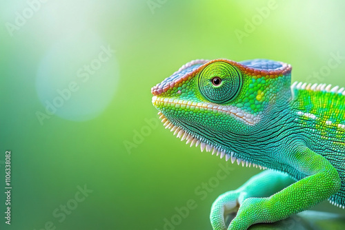 Green chameleon camouflaged amidst lush foliage.