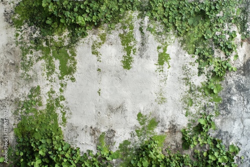 Green creeping plants cover a weathered wall in an urban setting during daylight hours