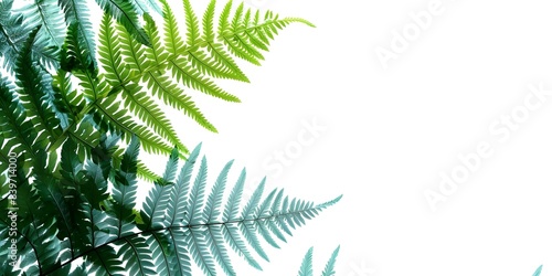 Green Fern Leaves Closeup on White Background Ideal for Botanical Design. Concept Botanical Photography, Fern Closeup, Nature Background, Green Leaves, Botanical Design