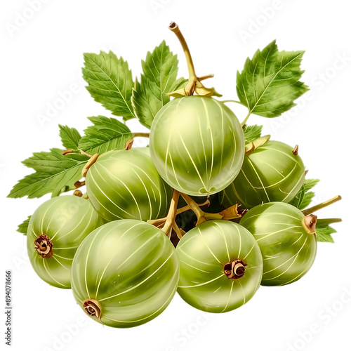 Green gooseberry with leaves on a transparent background