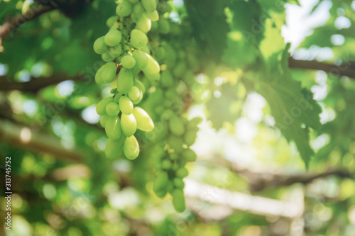 Green grapes on tree.