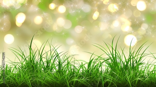 Green grass with bokeh lights, spring, nature background, for wallpaper