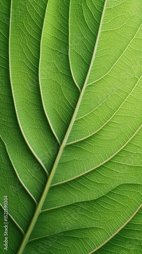 Green Leaf Surface Details, Bright Sunlight Veins Close-up, Plant Texture in Garden Setting, Natural Pattern Macro