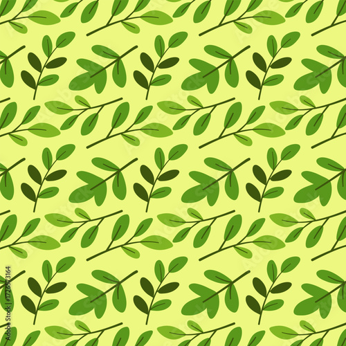 Green leafy seamless pattern on light background