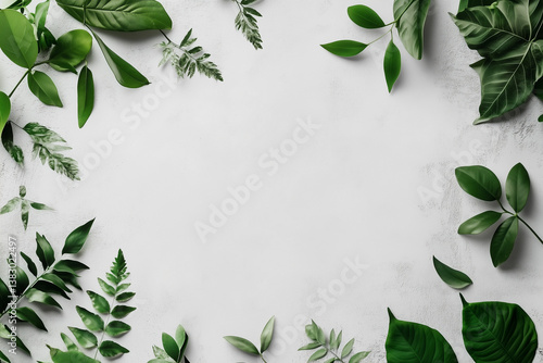 Green Leaves Frame on White Textured Background Natural Decoration Image