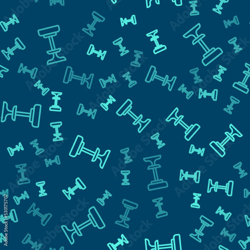 Green line Chair icon isolated seamless pattern on blue background. Vector