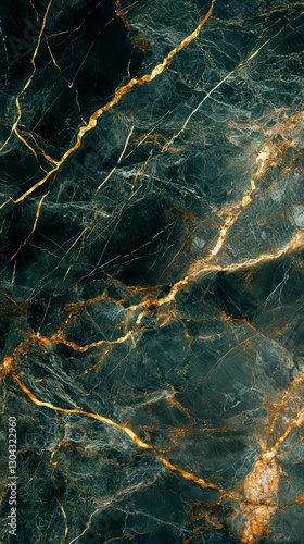 Green Marble Texture with Golden Veins: A close-up, abstract texture shot of luxurious green marble featuring intricate, shimmering golden veins that create an eye-catching and elegant pattern.