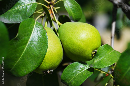Green pear on the branch
